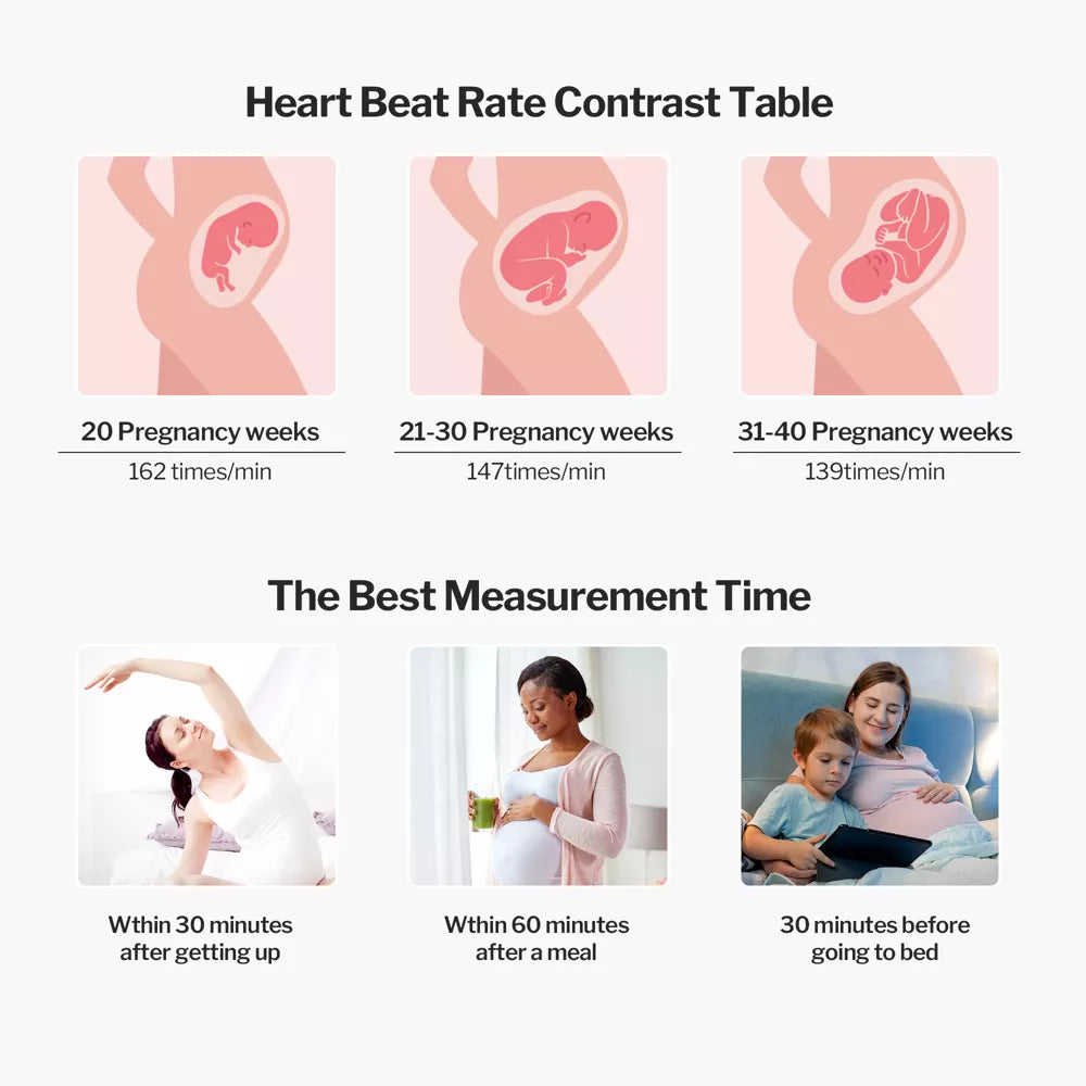For the most accurate results, use the fetal heart rate monitor at the right times. Experts recommend checking within 30 minutes after waking up, 60 minutes after a meal, or 30 minutes before bedtime. This ensures clear readings and helps you bond with your baby during calm moments of the day.